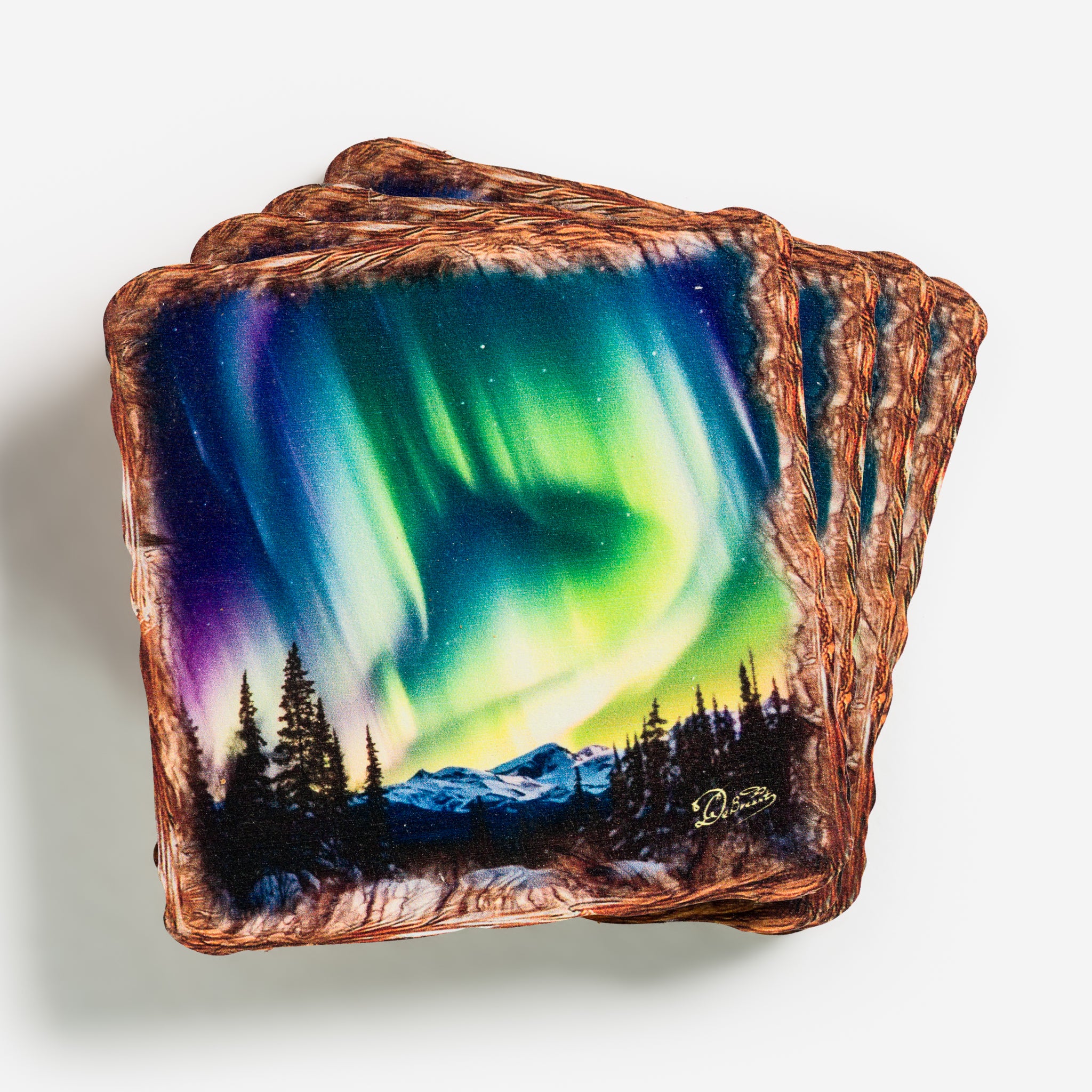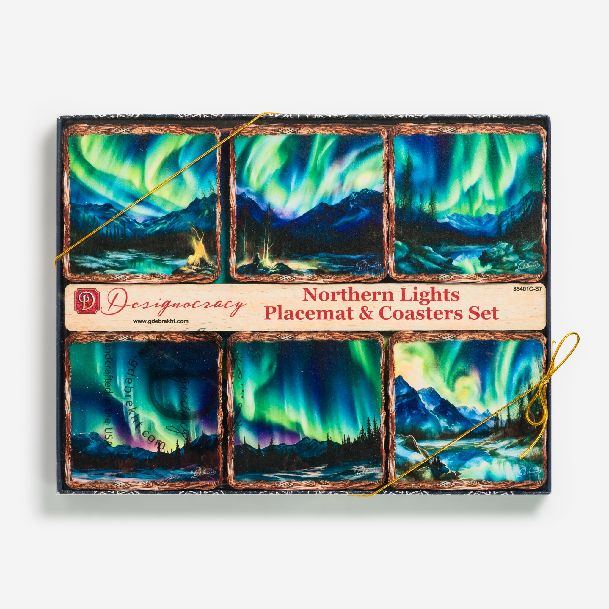 This gift set designed by Nature Wonders includes a wooden cork placemat and 6 matching coasters featuring the stunning phenomenon of the Northern Lights. This set is functional as well as beautiful. Made from high-quality materials, it adds a touch of nature to any dining experience.